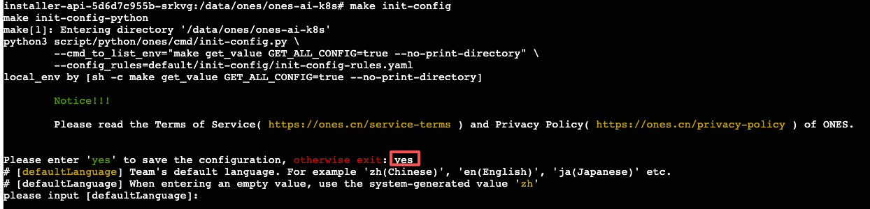 如果有无法修复的项目,则弹出提示需手工确认,此时可输入yes跳过并继续安装;或者联系ONES工程师进行修复。